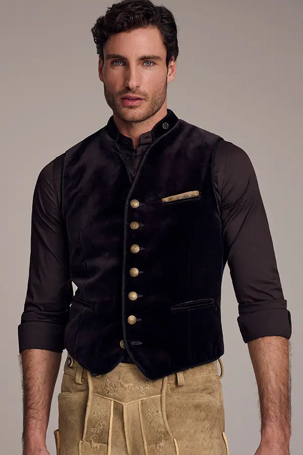 Samt Trachtenweste Henry in Mocca
