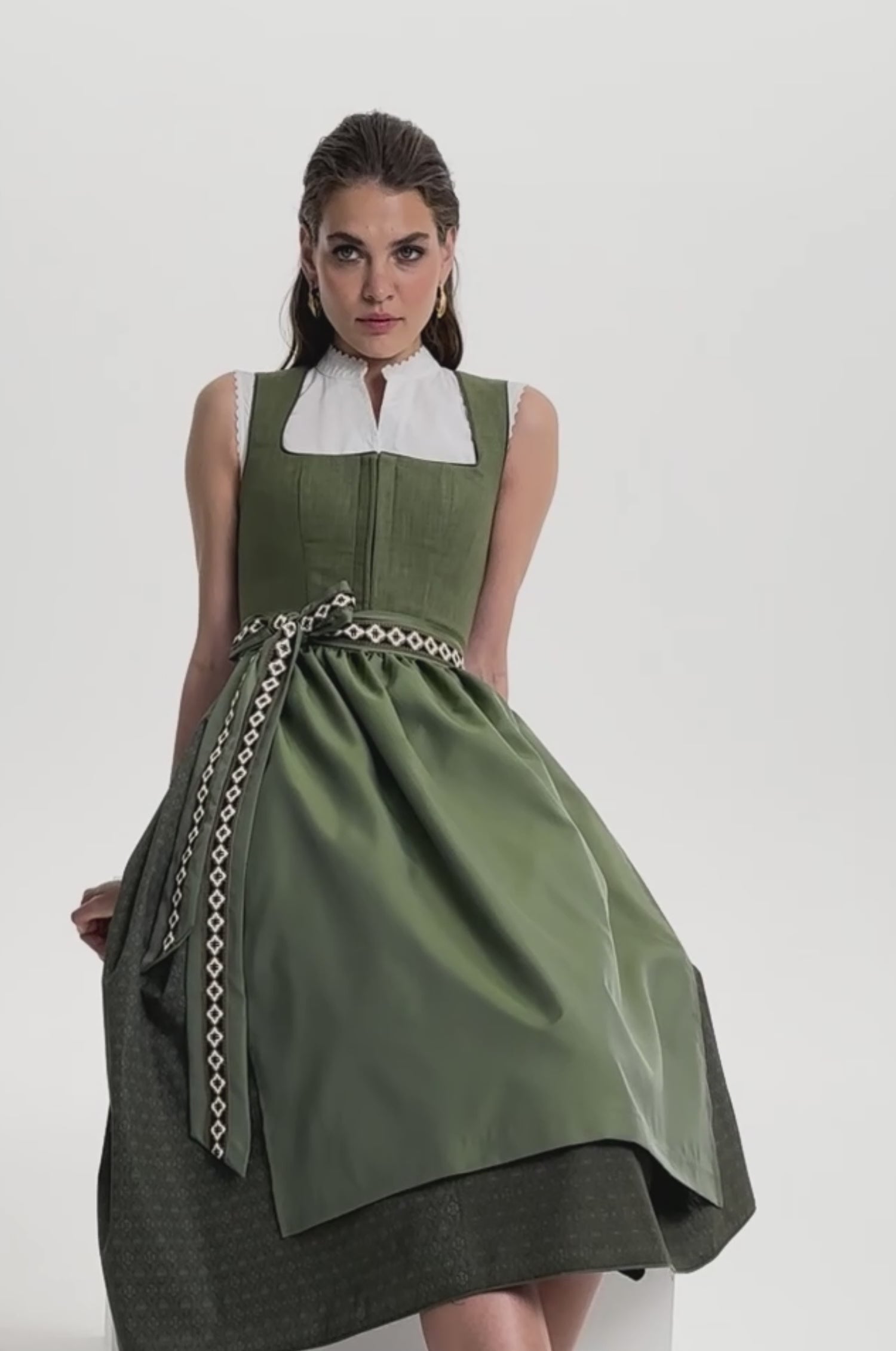 Dirndl Karla in Olive trifft die perfekte Mischung aus Tradition und Raffinesse.