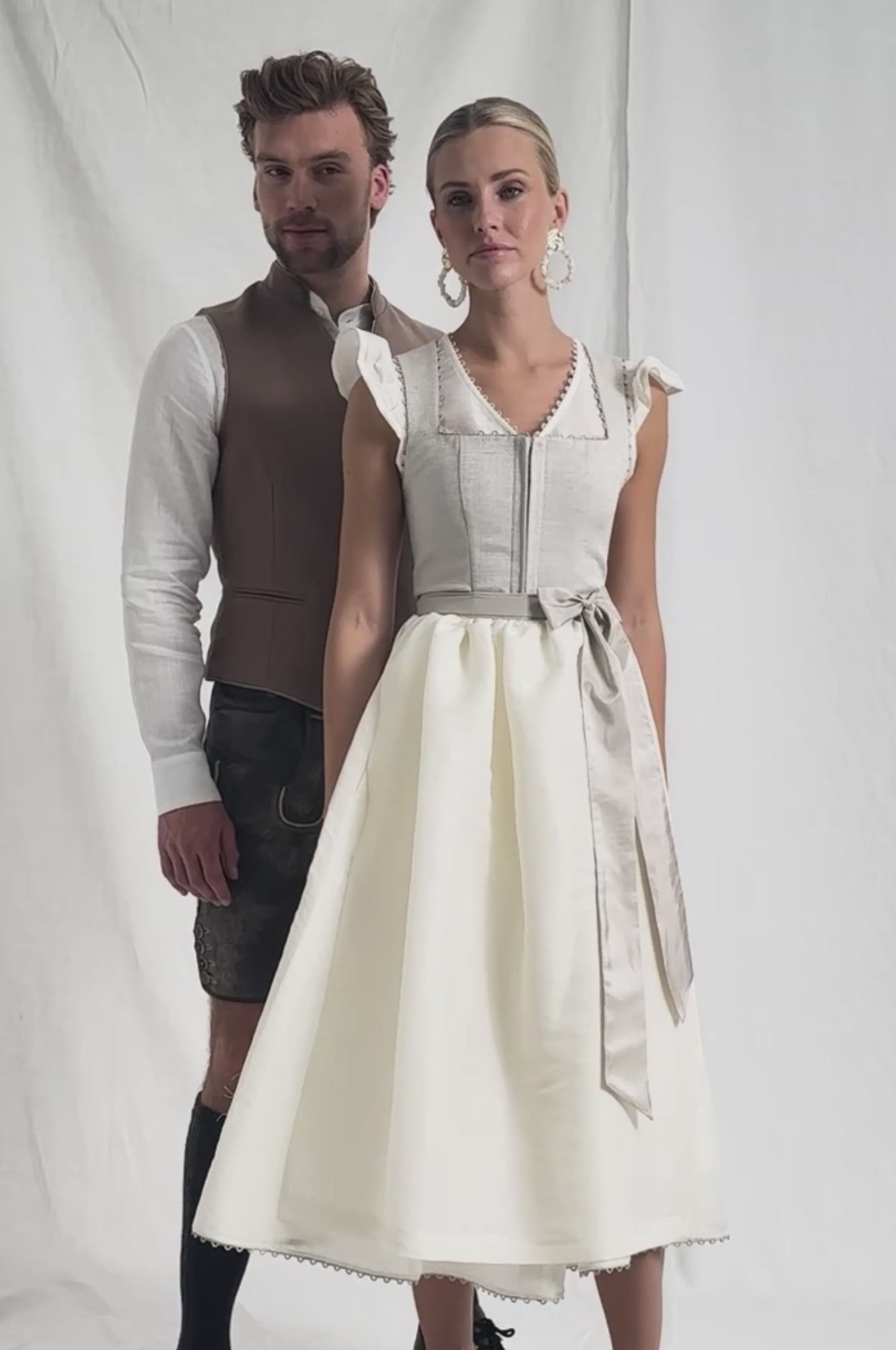 Das Dirndl bietet in der sanften Farbe Beige pure Eleganz und ist aufgrund der edlen, leichten Stoffe der perfekten Begleiter für das Frühjahr und den Sommer.