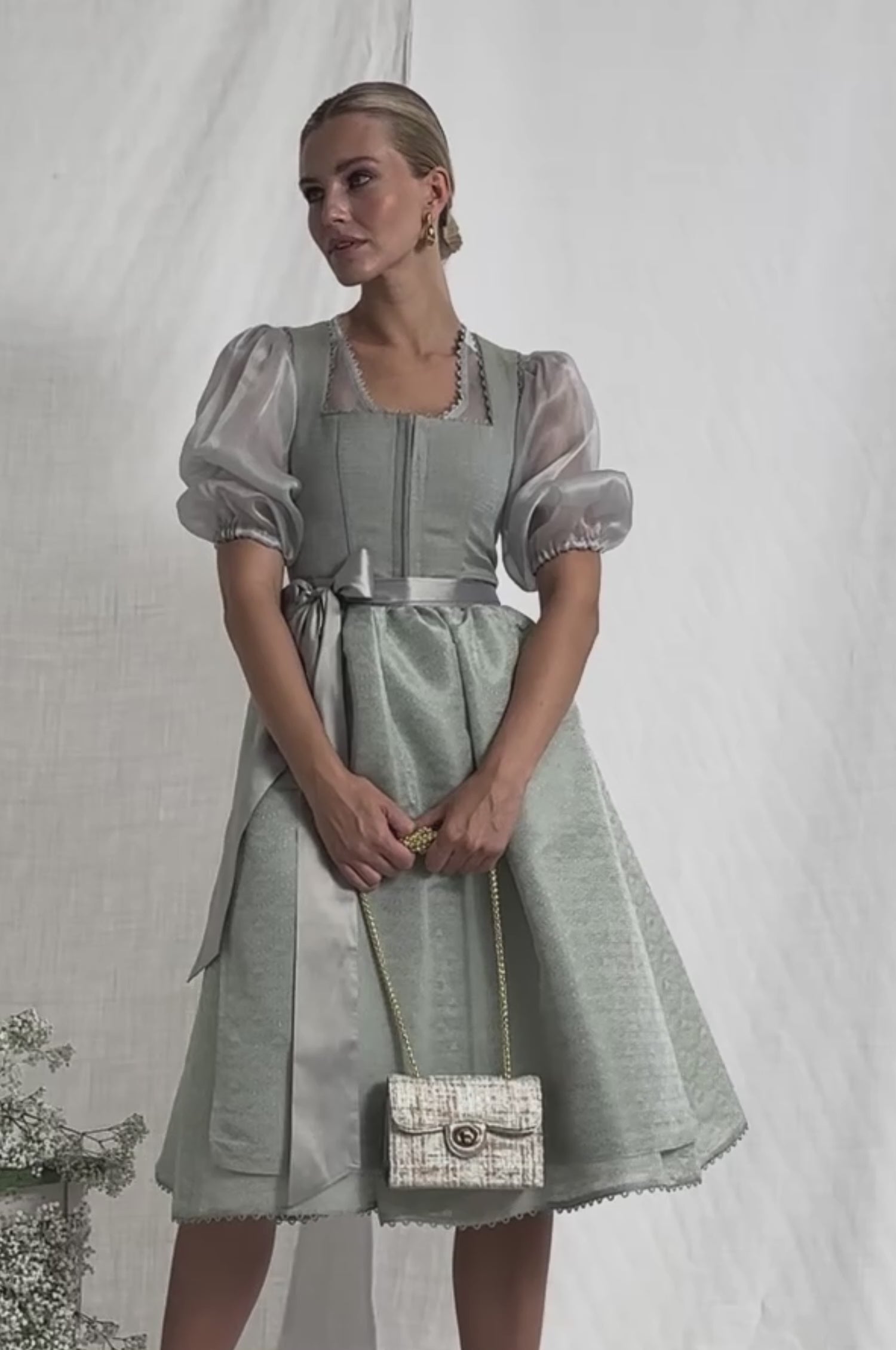 Das Dirndl glänzt in der Trendfarbe Mint und bietet mit edlen, leichten Stoffen den perfekten Begleiter für das Frühjahr und den Sommer.
