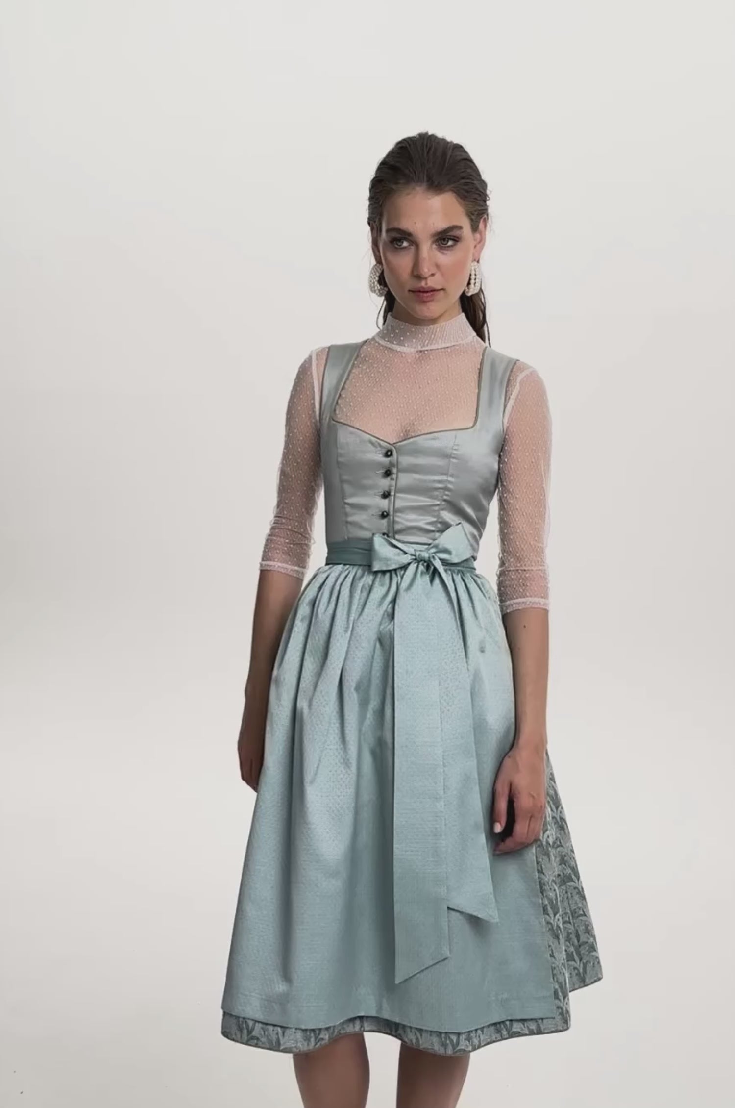 Frisch und leicht: Das ALISSA by KINGA MATHE Dirndl Talea in Eisblau vereint sowohl klassische Elemente als auch moderne Akzente und verleiht jedem Look eine zeitlose Eleganz.