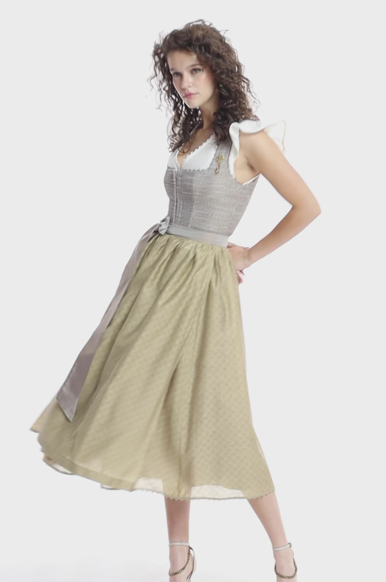 Dieses elegante Dirndl in warmem Goldton verbindet traditionellen Stil mit moderner Schlichtheit.