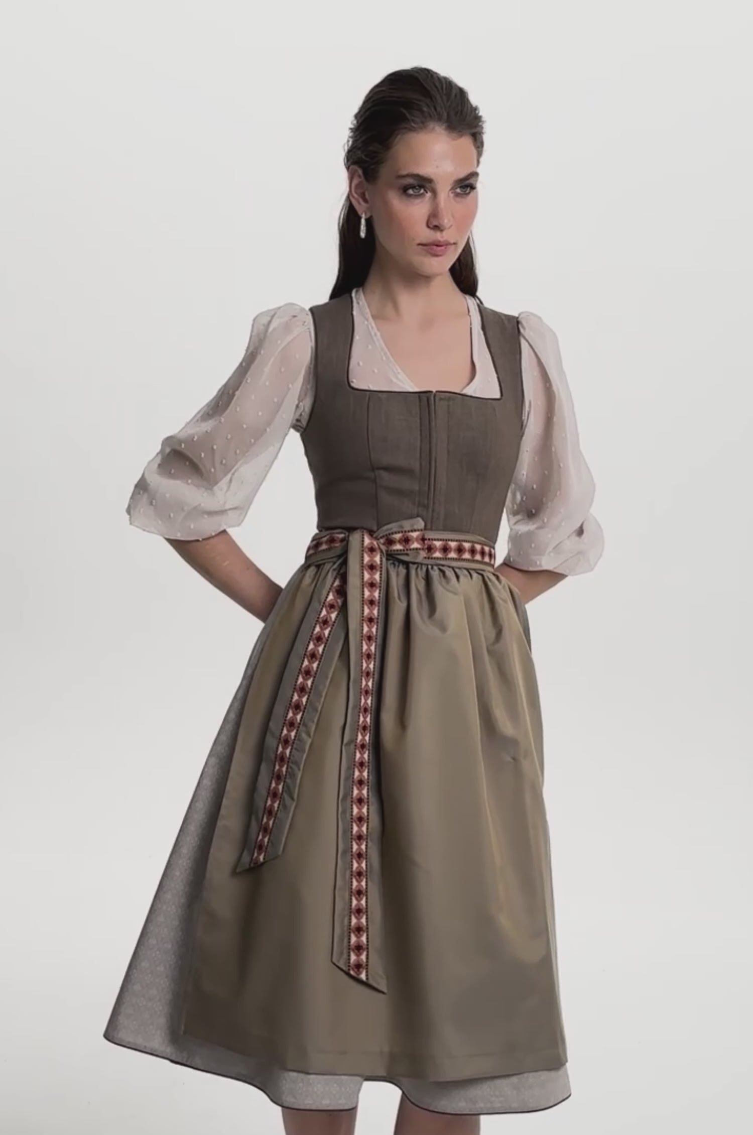 Die Dirndlbluse Lea in Puder besticht durch den transparenten Stoff mit Pünktchen Design und ihren eleganten V-Ausschnitt. Die Knopfleiste und der Dreiviertelarm verleihen der Bluse eine klassische Note. Perfekt für einen traditionellen Look mit modernem Twist.