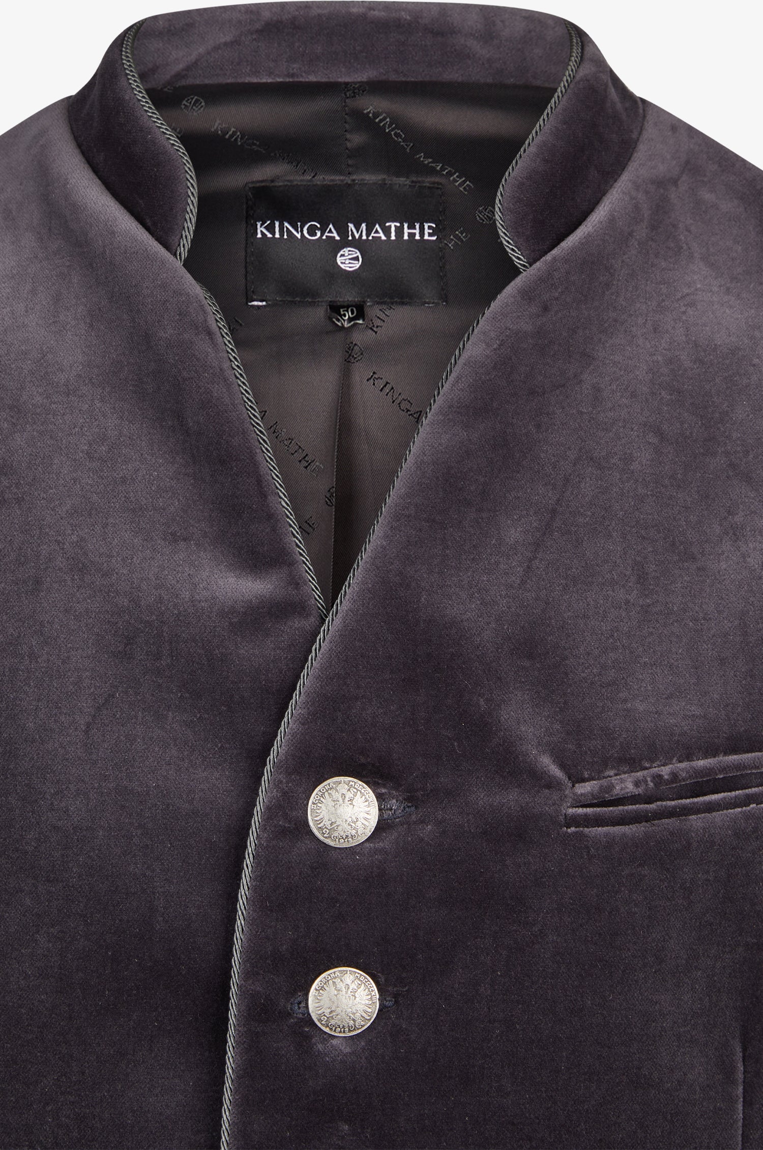 Die Samt Trachtenweste Henry in Anthrazit besticht durch ihr edles Material und eine klassische Knopfleiste, die für eine elegante Optik sorgt. Zwei praktische Eingriffstaschen bieten nützlichen Stauraum und unterstreichen die traditionelle Handschrift. Ideal für stilbewusste Liebhaber traditioneller Trachtenmode.